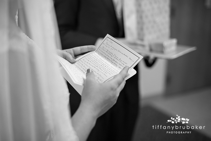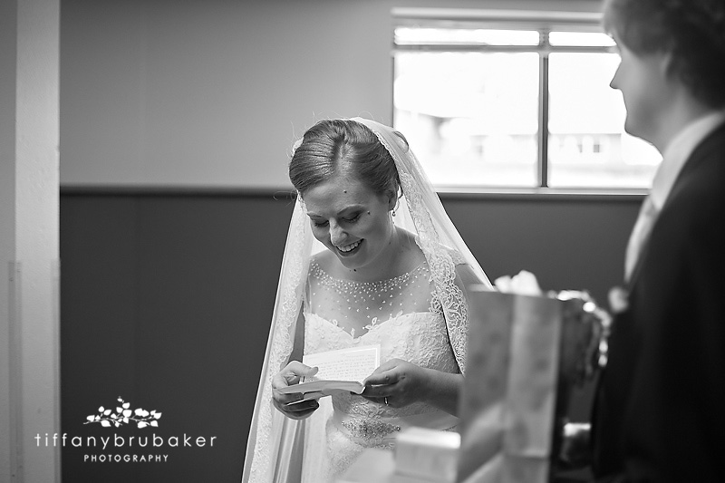 Tim and Claire exchanged notes and presents, one of the many, many sweet moments that happened during this wedding.