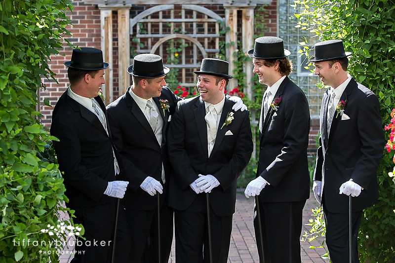 Despite Claire’s protests, Tim got top hats, white gloves, and canes for his groomsmen. I thought it was a cute touch for a few pictures, until Tim’s brothers started whacking each other with the canes! Ha.